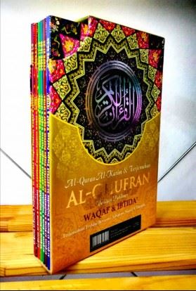 Salah satu pilihan Al-Quran yang mudah di bawa ke mana-mana sahaja seperti ke kelas pengajian Al-Quran kerana hadir dengan 5 juzuk setiap jilid. Disertakan sekali dengan panduan waqaf & ibtida' serta terjemahan terkini dalam bahasa Melayu moden. Amat sesuai untuk dijadikan hadiah, terutama buat orang tersayang selain hadiah untuk diri sendiri.