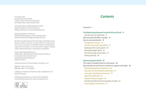 Karin Opitz-Kreher has qualifications in aura soma, aura soma bodywork, and foot reflex zone reharmonization. She works in her own wellness clinic, specializing in stress reduction and harmonization. Karin has been making use of traditional knowledge of essential oils and passing this on to others in workshops since 2013. Jutta Schreiber, D.M.D., has been working as a dentist for more than thirty years, specializing in holistic and naturopathic approaches at her own clinic in Neubi berg, Germany. Her methodology includes materials testing and exclusion, identifying interference zones, homeopathy, anthroposophical techniques, bioresonance, matrix rhythm therapy, and much more. She has also been using essential oils successfully in her clinic for many years. Since 2022 Jutta has worked with various dental practices as a consultant on dental and oral health, applying her knowledge and expertise in the field of essential oils.