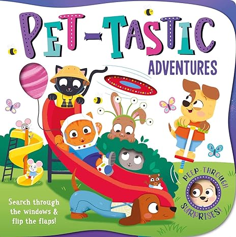 Follow the pets on a fun adventure to outer space, the fairground, and more. With die-cut windows to peep through and lift-the-flaps, this little storybook has a ton to discover!