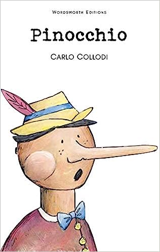 Pinocchio by Carlo Collodi; Carved by Old Gepetto, Pinocchio has an enormous nose which grows even longer whenever he tells a lie. And Pinocchio is such a scamp that he gets into all sorts of mischief. He runs away and joins a circus but eventually the conscience of a talking cricket and Pinocchio's guardian fairy restore him to good behavior, obedience and care for others.
