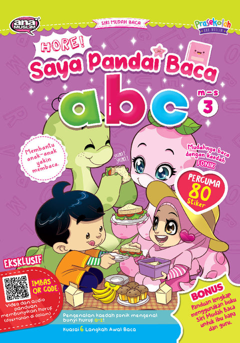Membaca dengan mudah dan menyeronokkan dengan kaedah fonik! SIRI MUDAH BACA, membantu anak-anak yakin membaca, langkah demi langkah. Komponen dalam buku ini disusun secara bertahap untuk membantu si cilik menguasai kemahiran asas membaca dengan mudah dan menyeronokan.