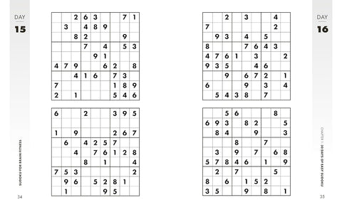 Boost your brainpower—and have fun!—with 90 days of easy-to-hard sudoku puzzles.